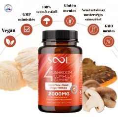 A friss, gyümölcsös bogyós íz és a gondosan megalkotott formula teszi a SOOL 4 Mushroom gumivitamint ideális választássá azok számára, akik természetes módon szeretnék támogatni testi-lelki jóllétüket.